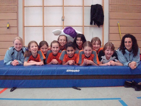 Freuen sich auf die Play-Offs der Plätze 1-5: unsere Jugend AK 8-11 mit den Trainerinnen Juliane Nolte und Makbule Özden